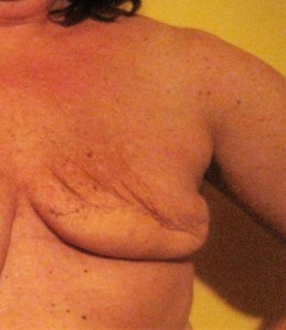 The procedure was actually much more involved than the mastectomy. I had an amazing plastic surgeon – Dr. Karly Kaplan at Kaiser – who I give all the credit for an amazing procedure that resulted in a beautiful C/D breast!
